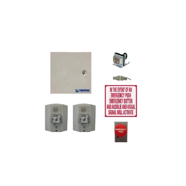 VISUAL SIGNAL WILL ACTIVATE” is included and must be applied above the emergency button. Once the emergency button is pushed, the audible and visual signals will continue to be active for up to 4 hours (adjustable). Opening the door will reset the alarm immediately.